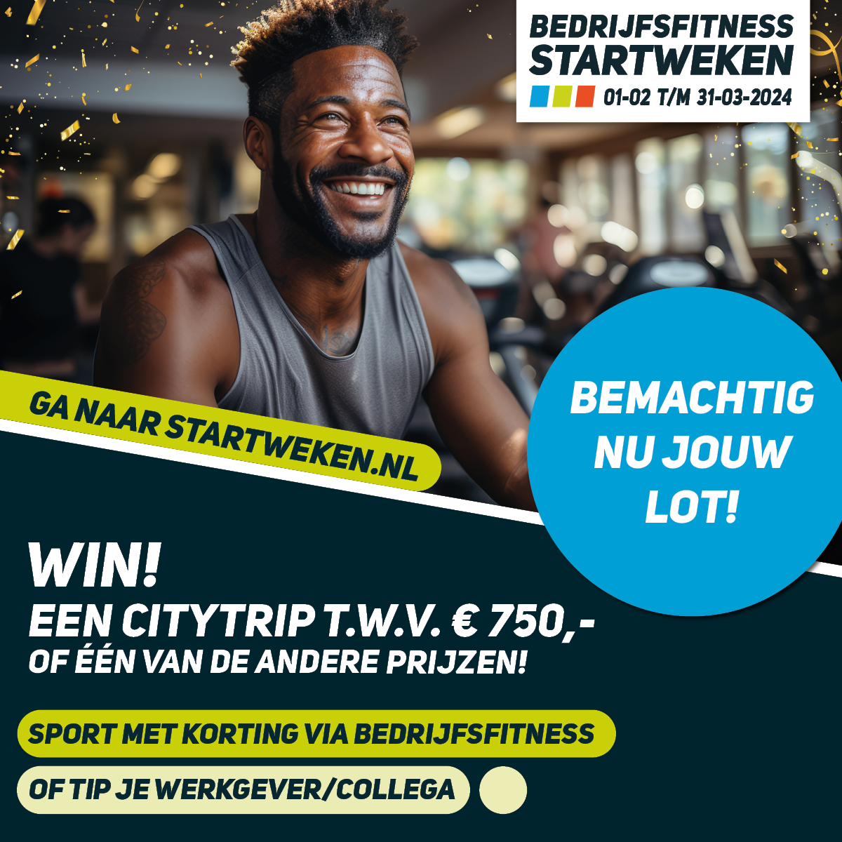 Het zijn de Bedrijfsfitness Startweken, tijd om in beweging te komen! In februari en maart maak je namelijk kans op een citytrip t.w.v. €750,-, Apple Airpods 3, een Magimix blender en heel veel andere prijzen! Meedoen is super makkelijk, lees snel verder!